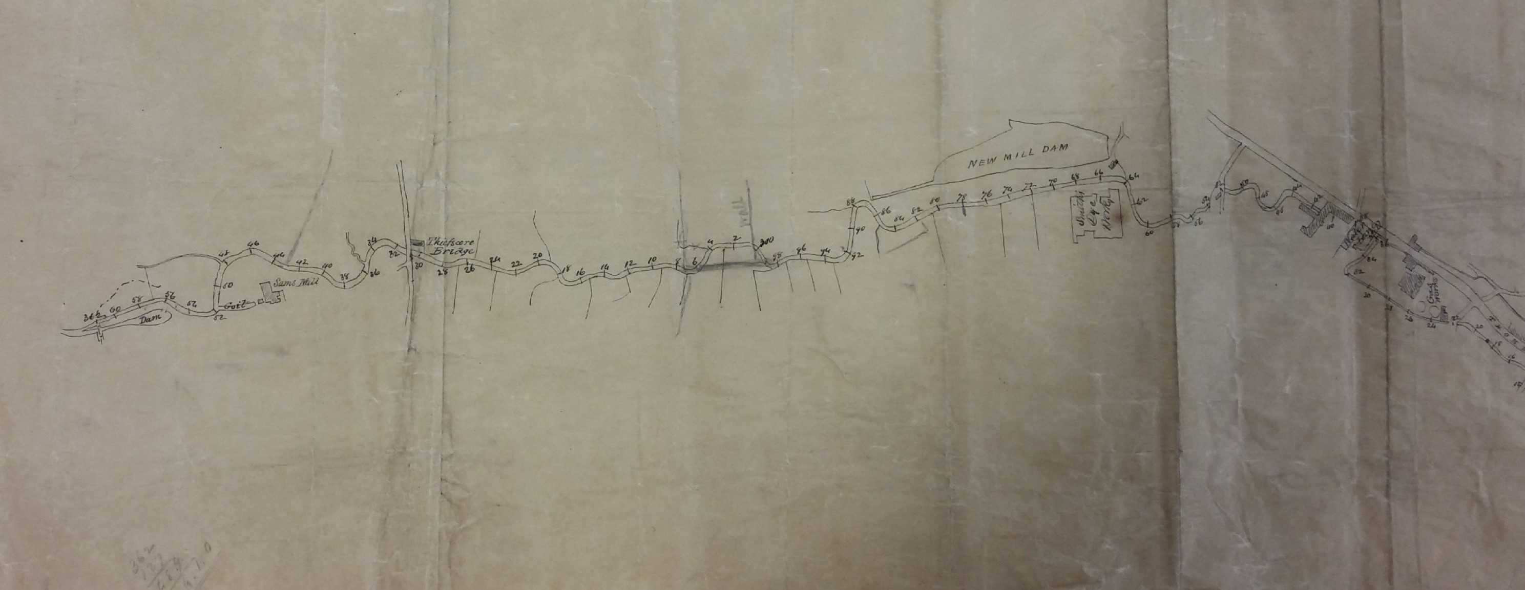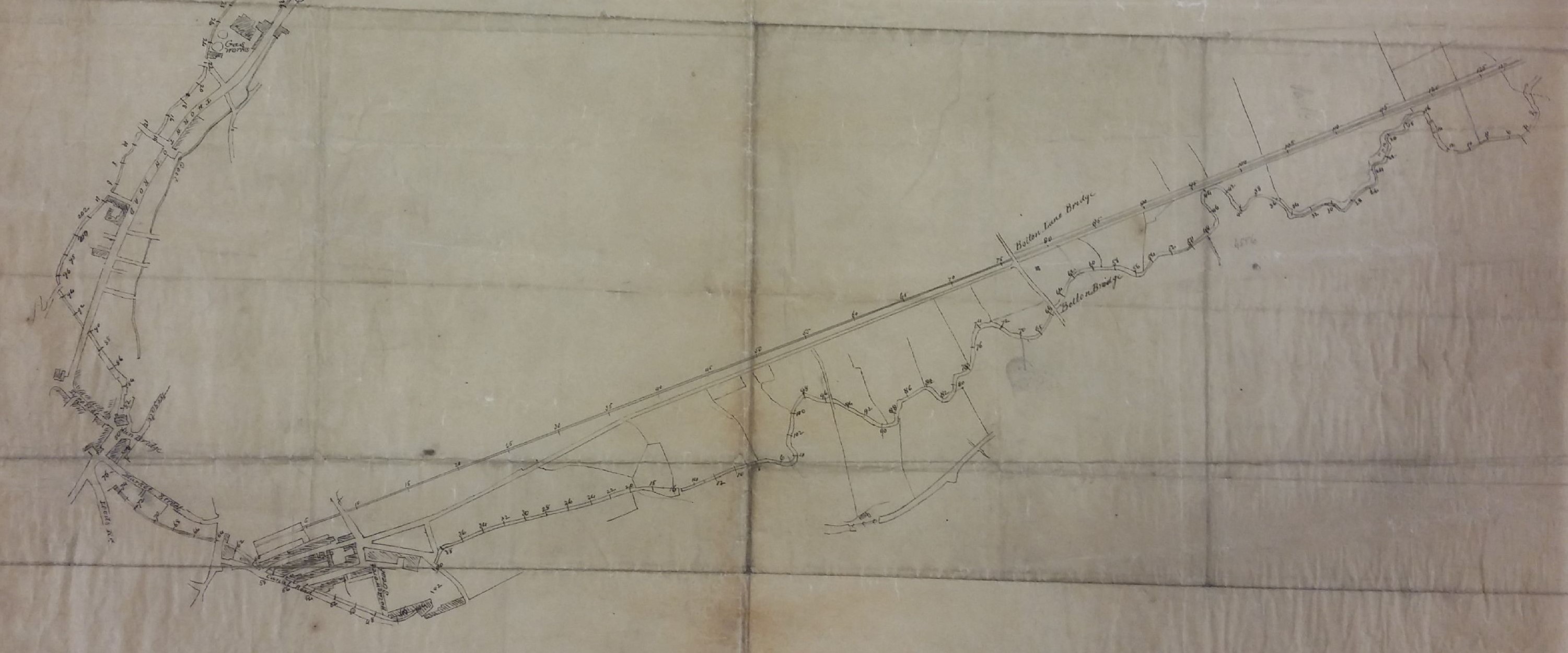Finally the beck emerges again to pass open, and un-straightened, through Bolton Bridge and on to Shipley. Its junction with the River Aire is not shown. The map is unlabelled and undated. The Midland Station (later Forster Square) and the railway line to Shipley have been constructed, so the map must be more recent than 1846. I’ve guessed at 1850.