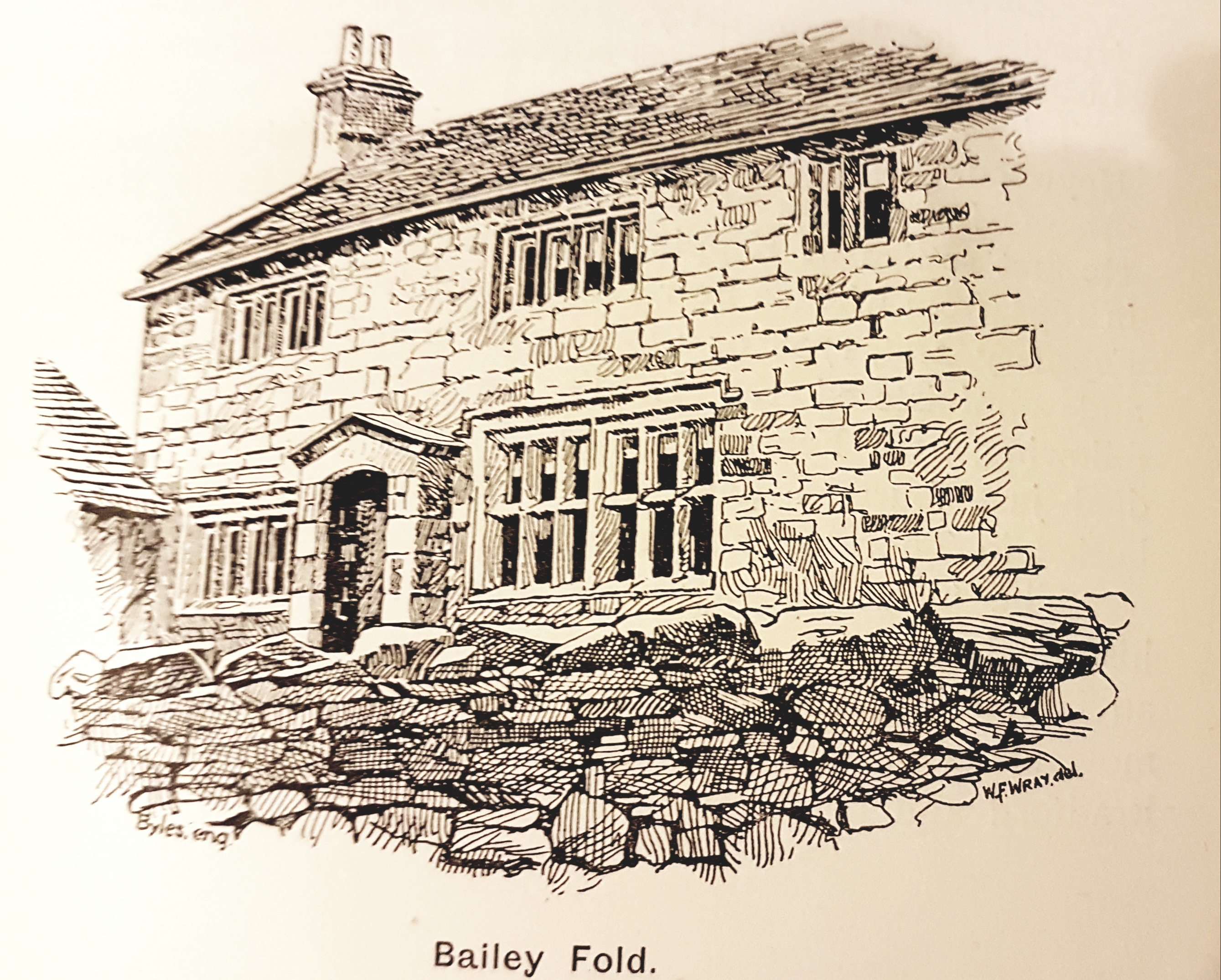 The topography of the plan closely matches that of the first Ordnance Survey map of the area which would have been surveyed in the late 1840s. The farmstead is clearly Bailey Fold, approached from Allerton village down Cote Lane. Cudworth suggests than the farmhouse was named after the original builder and that Joseph Lister, historian of the siege of Bradford, lived there in the seventeenth century. An illustration of the farmhouse is included in his history of Heaton, Manningham and Allerton although I’m not sure which of the plan buildings this represents.