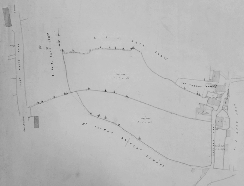 Many of the roads in this part of Manningham appear to have changed their names: this is often because an old trackway has been replaced by a new road which is on a different alignment, although still running in the same general direction. In this way, for example, Hesp Lane was succeeded by North Park Road. Then again there may be inconsistencies in spelling so that Hesp Lane may be called Esp Lane, as here, or Lily Croft Lane can sometimes be Law Croft Lane.