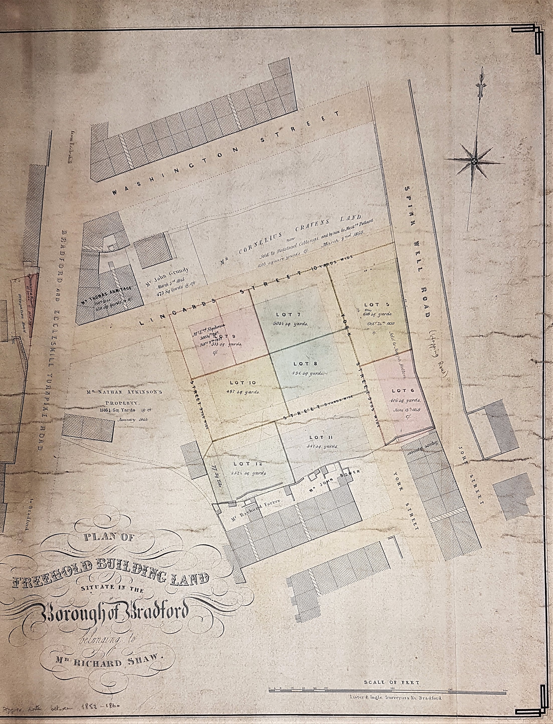 Title: Plan of Freehold building land situate in the Borough of Bradford, belonging to Richard Shaw