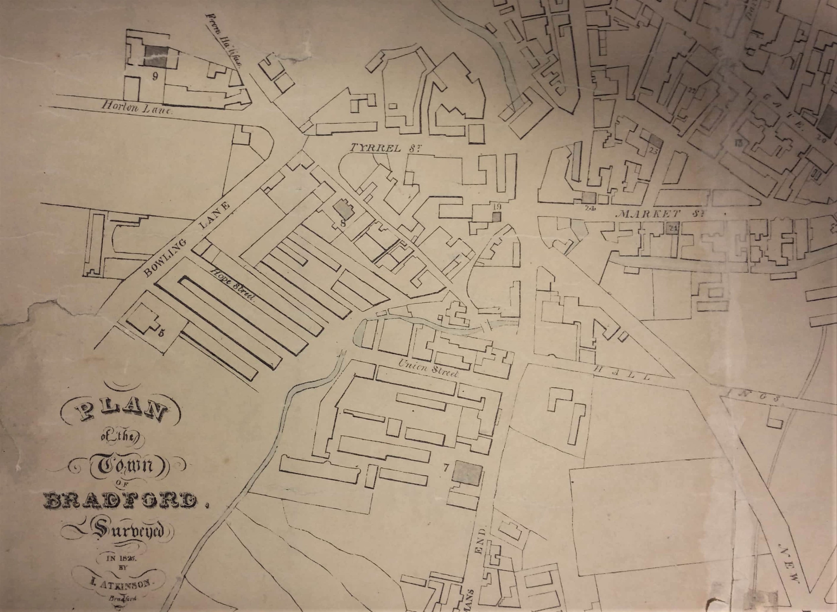 It is not unusual for readers to request more information about the maps included in this series. On this occasion Bradford-born archaeologist, Dr Jane Wheeler, encouraged me to look a little further for information in the large collection of photographed reserve collection maps I have accumulated. The first detail is from a map of Bradford dated 1825. Manchester Road was known as Bowling Lane at that time.