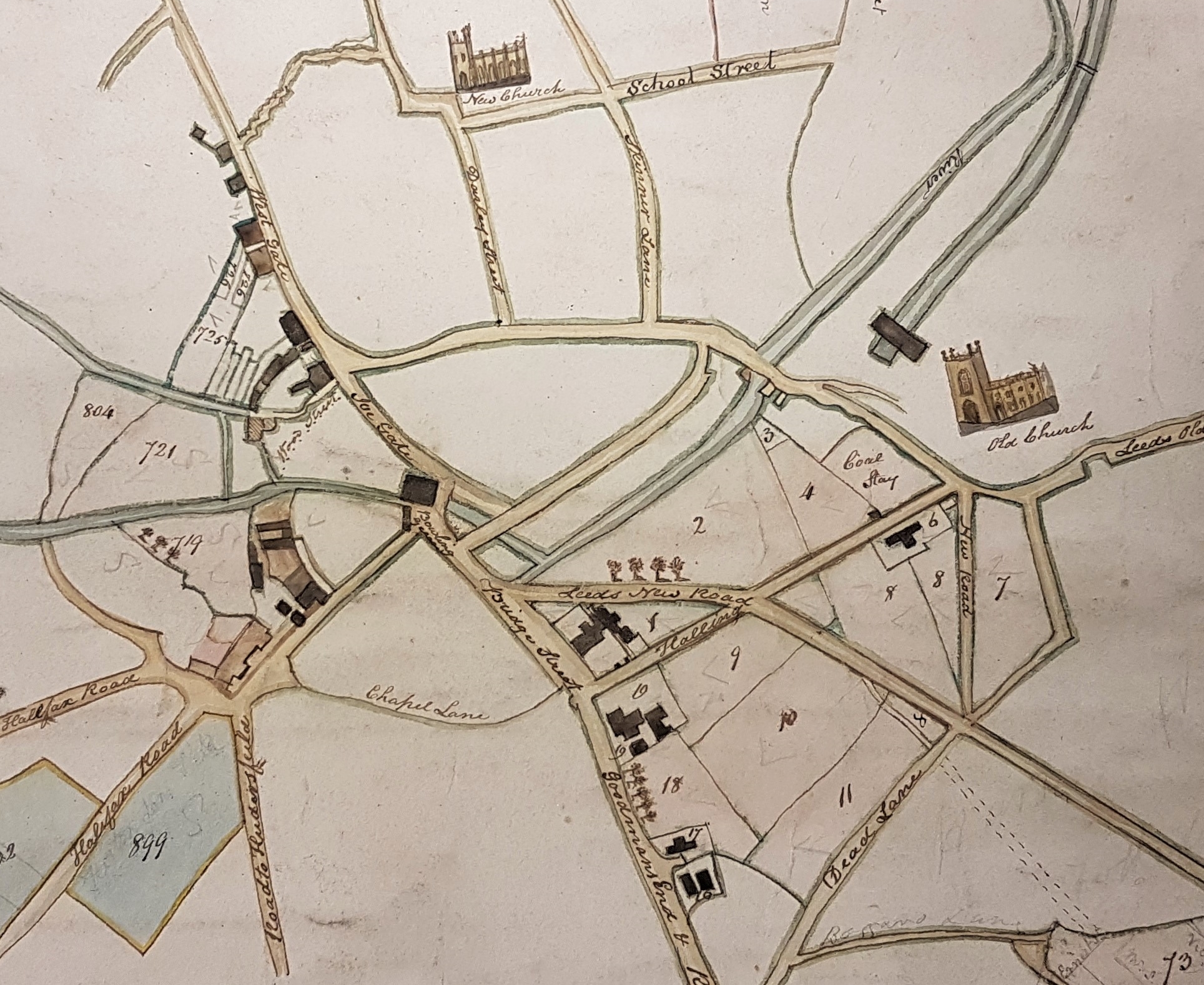 This second map was probably drawn in or about 1815 when Wright came wholly into his inheritance. This is confirmed by the image of the long-vanished Christ Church (actually built in 1815) being referred to as the ‘New’ Church. You can see that the Thornton Road turnpike has not yet been constructed. The land on which the Court House was to be built is vacant and marked with the number 9.
