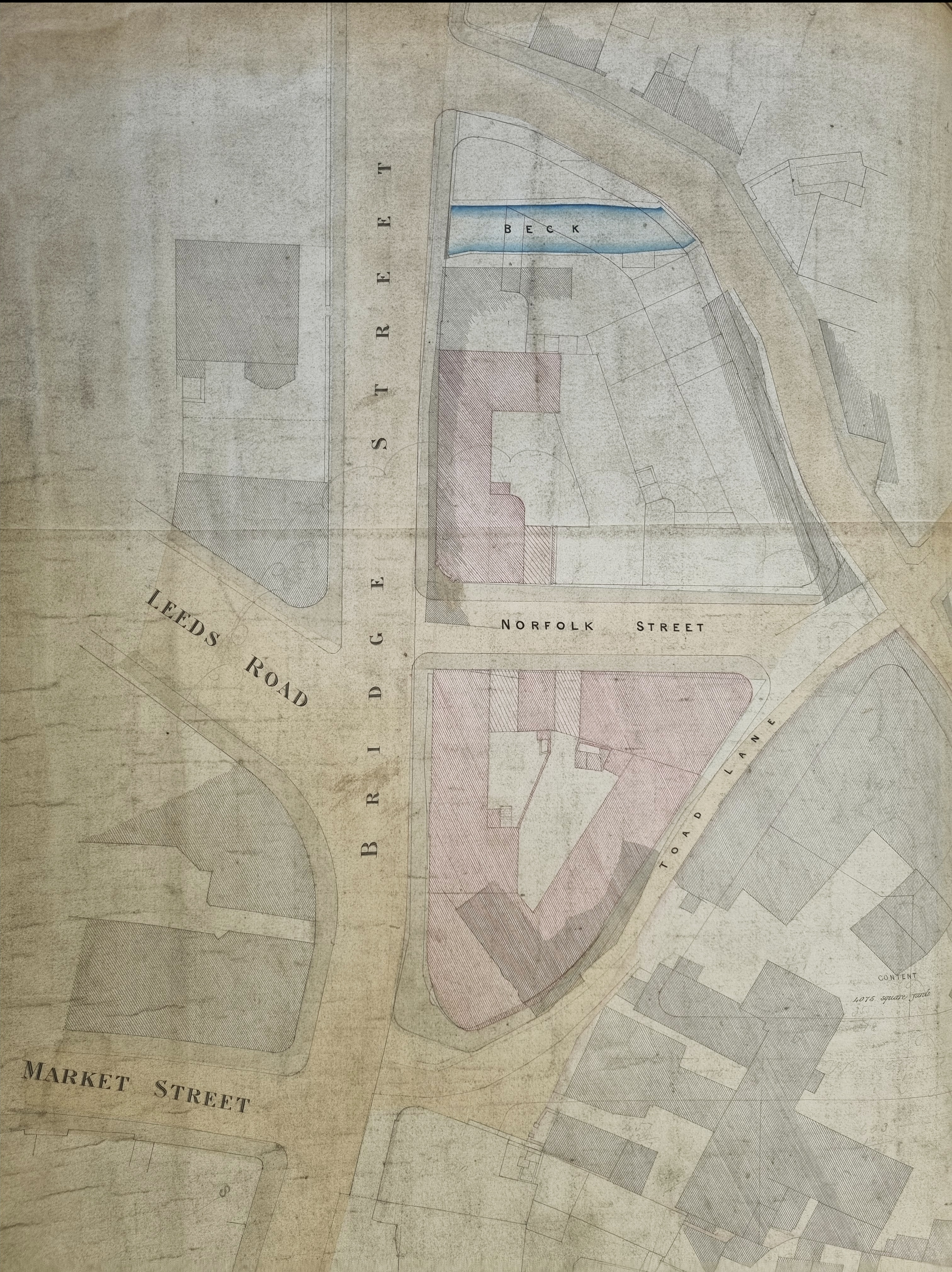 Why Toad Lane? I have heard that it is a contraction of ‘th’owd’ lane, and I don’t have a better suggestion. Local photographer and historian Kieran Wilkinson tells me that Toad Lane was ‘stopped up’ in 1869 to assist with the subsequent Town Hall development. The Bradford Daily Telegraph of 10 September 1873 recalled that Toad Lane was a ‘narrow passage… immediately behind Garth’s warehouse’. According to the Bradford Observer of 17 March 1869, the width of Toad Lane was only three and a half yards.
