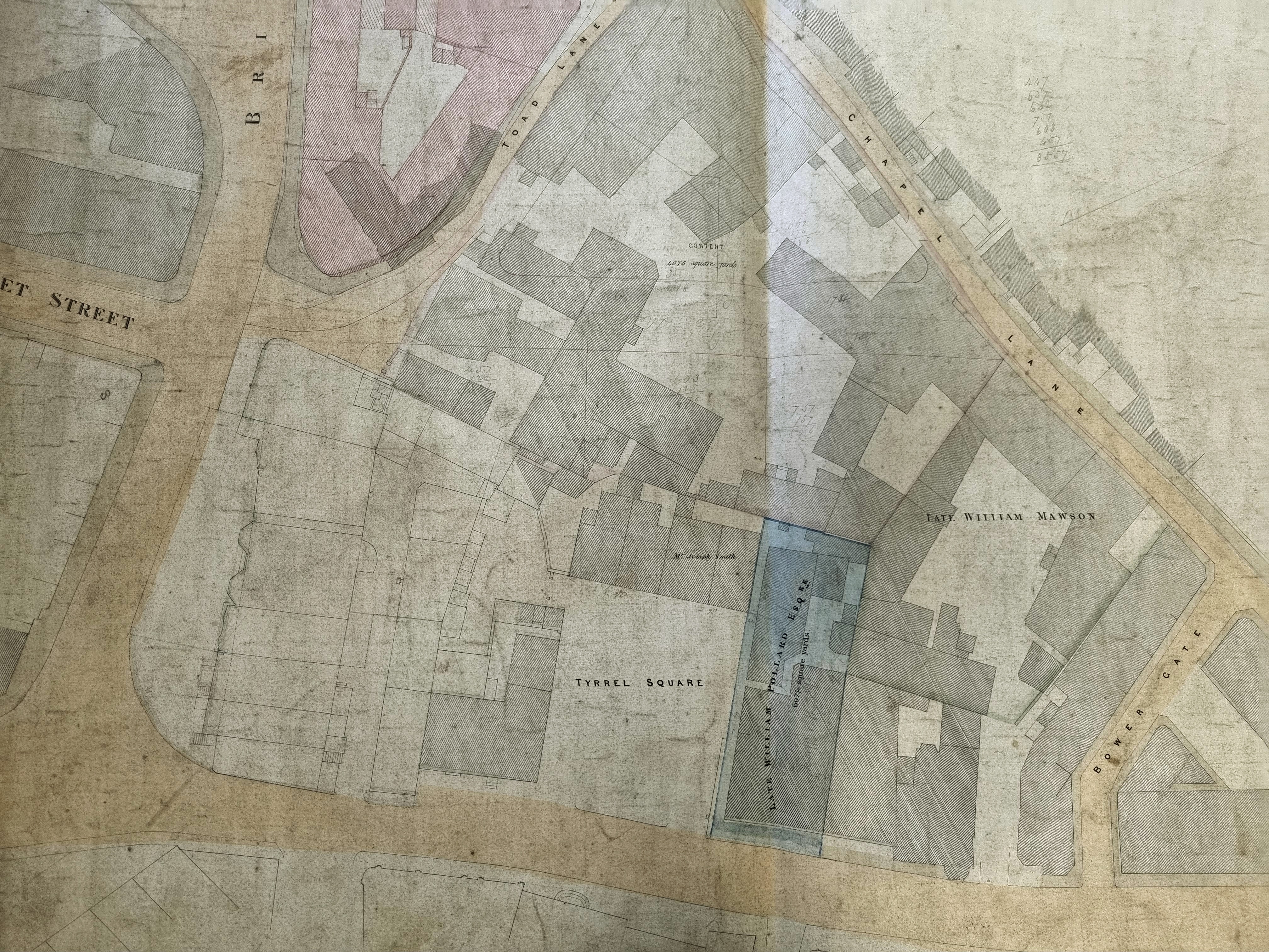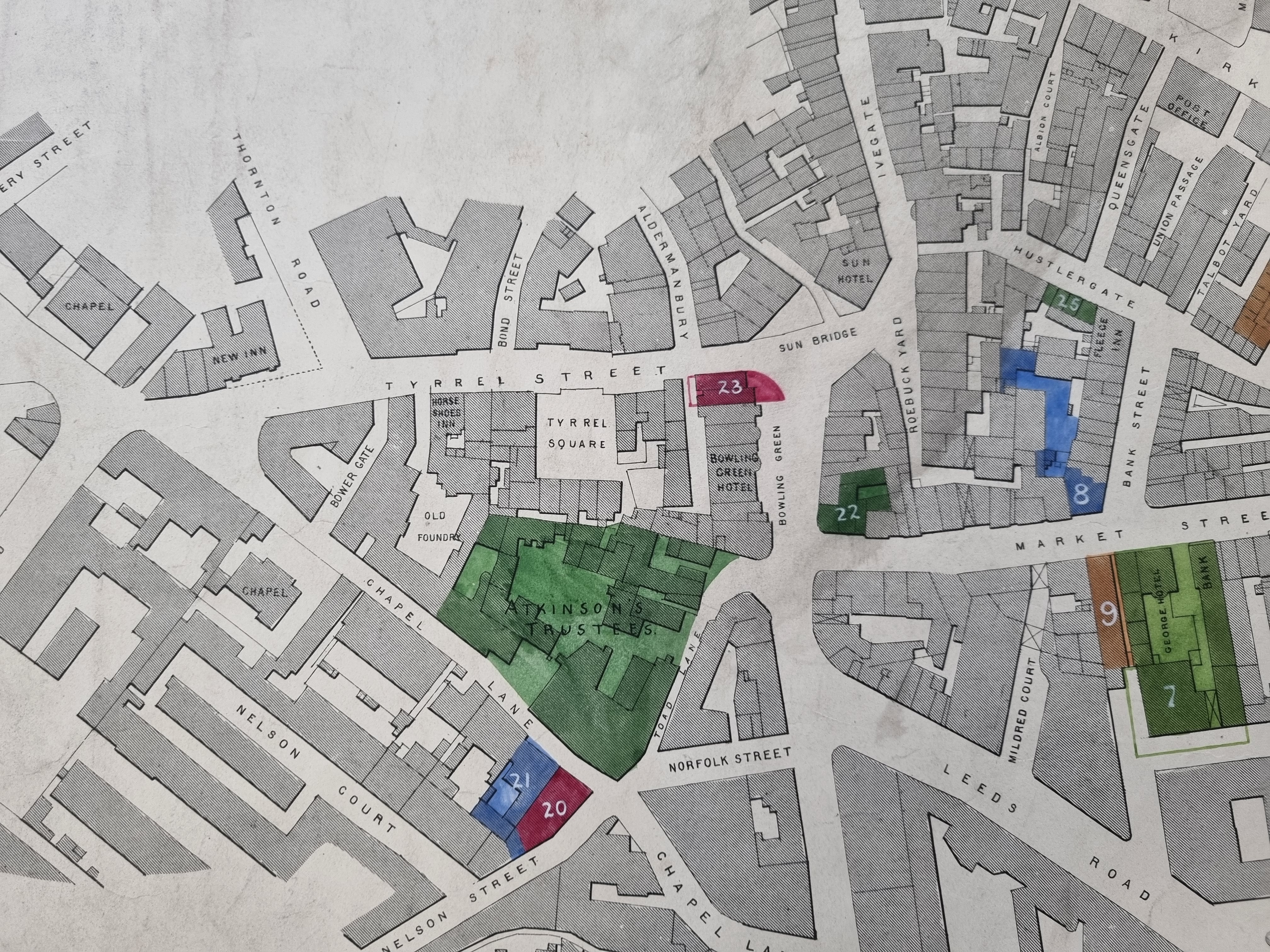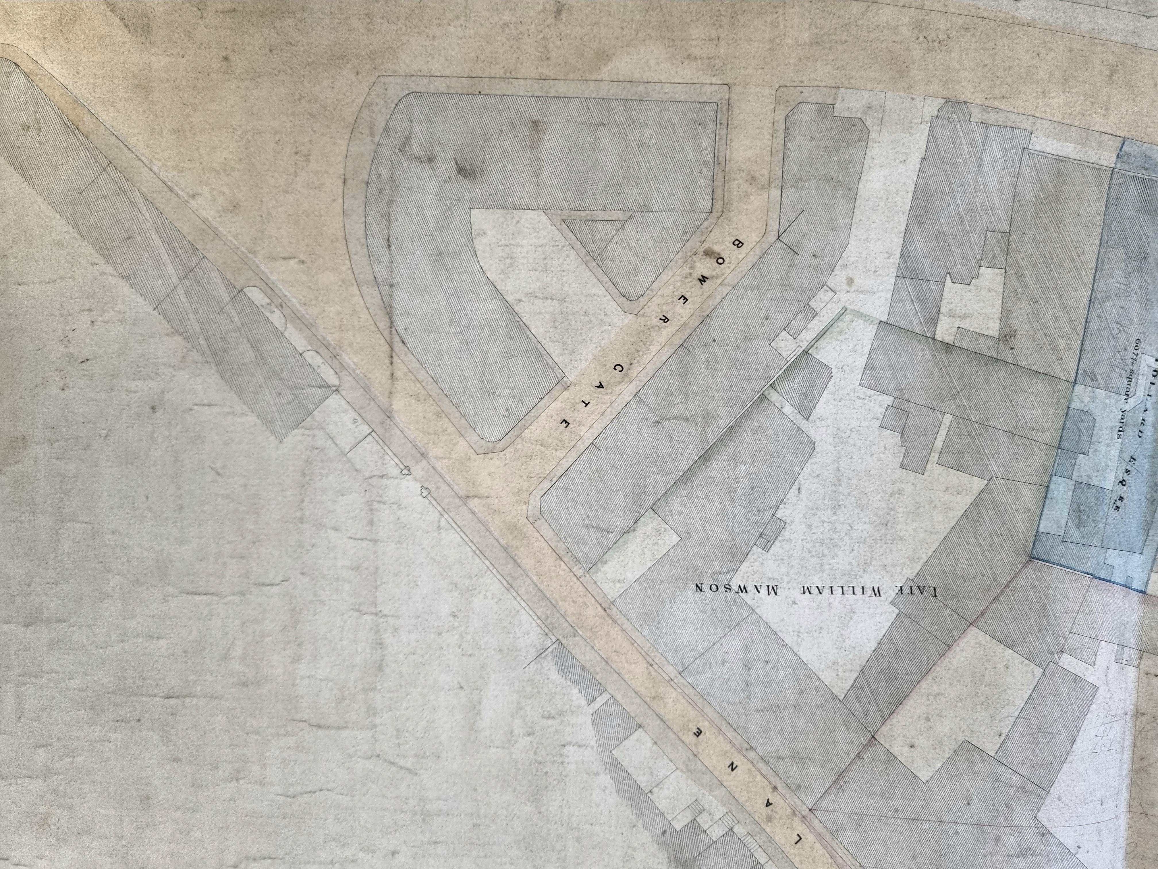 Maps of this type seem to have been produced by the Corporation when roads were widened or premises purchased. They are never dated but it wouldn’t be a huge task to reassemble them in order to study the developing town centre.