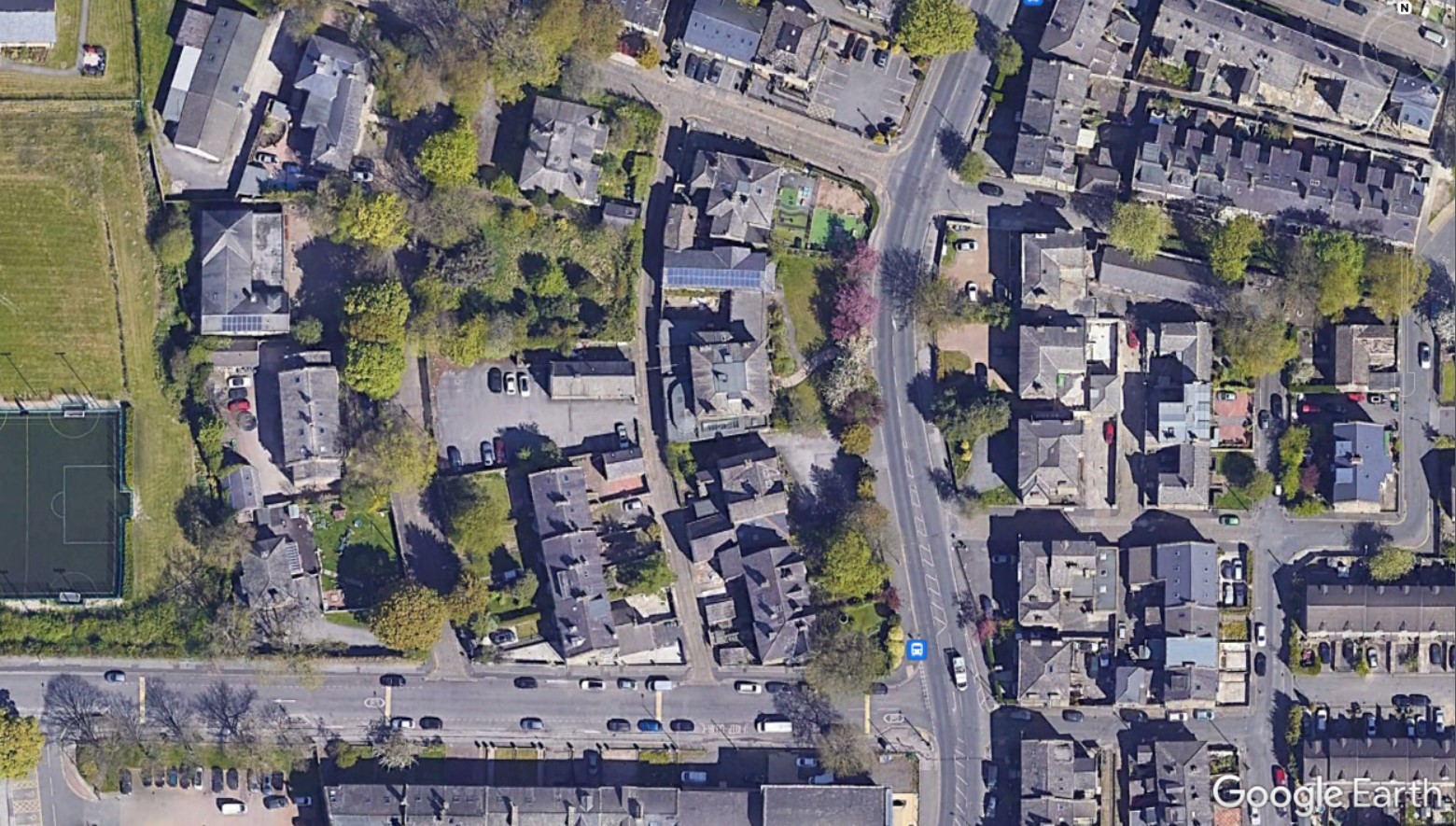 I have started with the present appearances contained in a capture from the valuable application ‘Google Earth’. In this capture the road running vertically is Little Horton Lane. Coming from the city centre, at the top of the image, the two right turns are Melbourne Street and Trinity Road. The now famous club house is the rectangular building in a yard off Back Russell Street, which has three parked cars beside it.