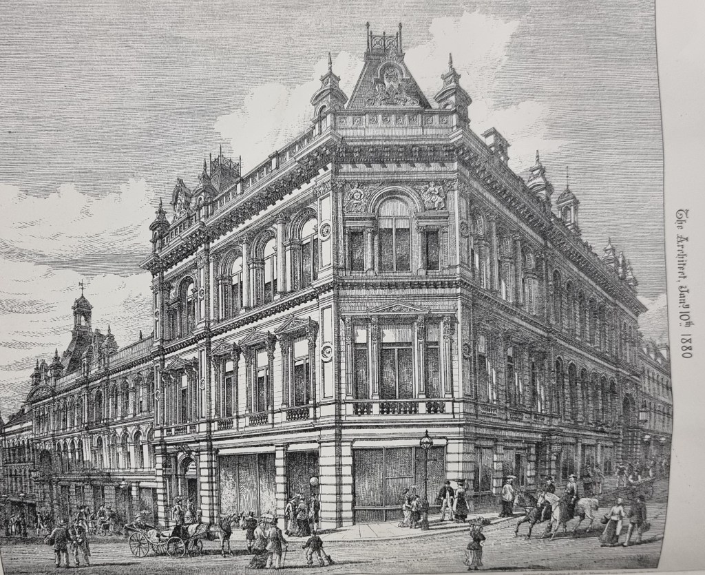 The value of these plans is greatly increased if they can be illuminated by photographs or drawings. The second figure shows the Library and Museum in 1880. The drawing comes from a journal called The Architect and offprints from this journal also form part of the LSL reserve collection. The logical time for such illustrations to appear was when a civic building was being planned, but an architects drawing may not of course have represented the completed building with complete accuracy.