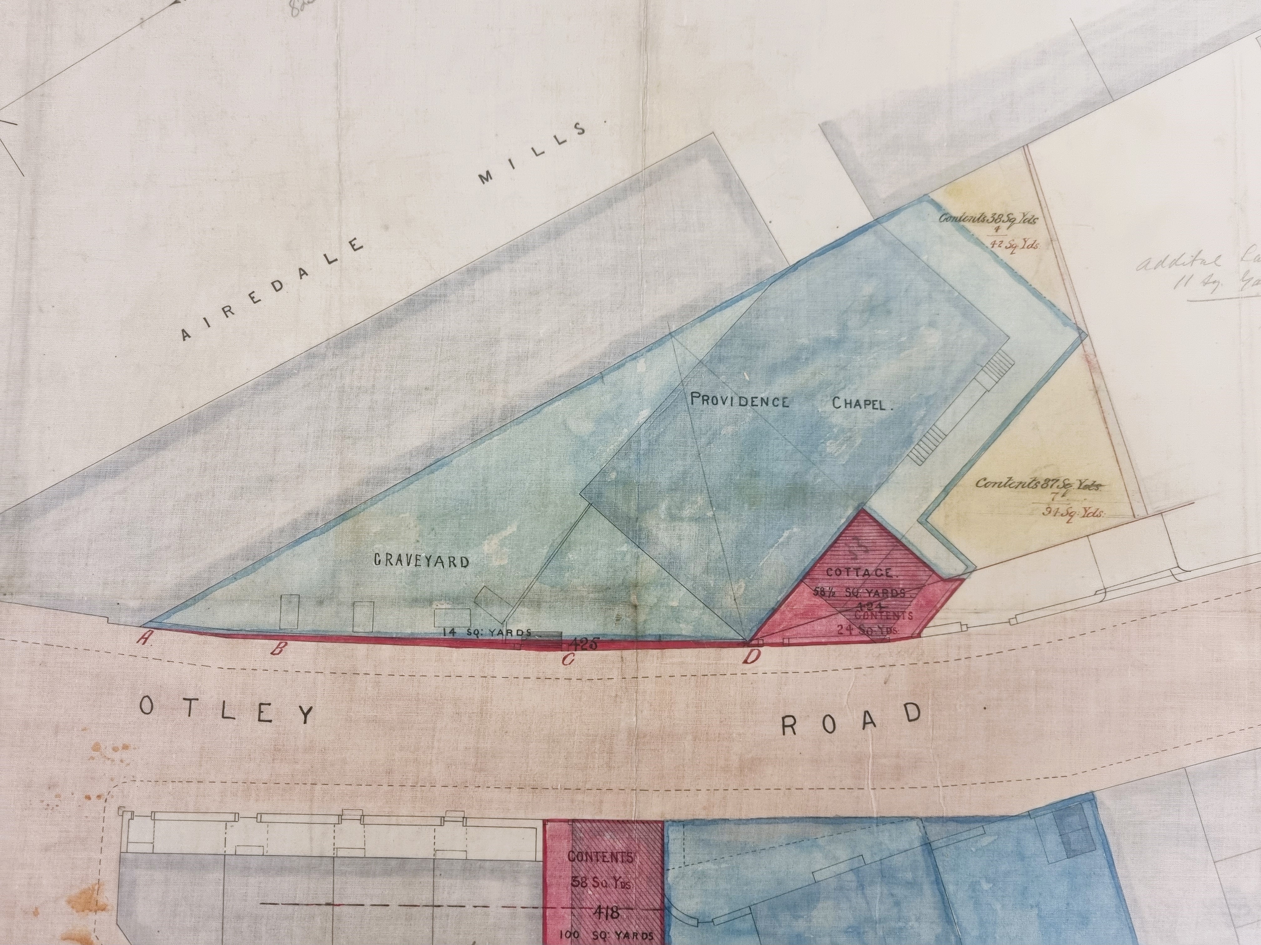 Regular readers will know that I am trying to assemble a accurate database of all the nineteenth century places of worship in Bradford. The Local Studies Library has this plan of 1876 which was produced by Shipley Local Board, effectively the town council, and the Providence Chapel trustees.