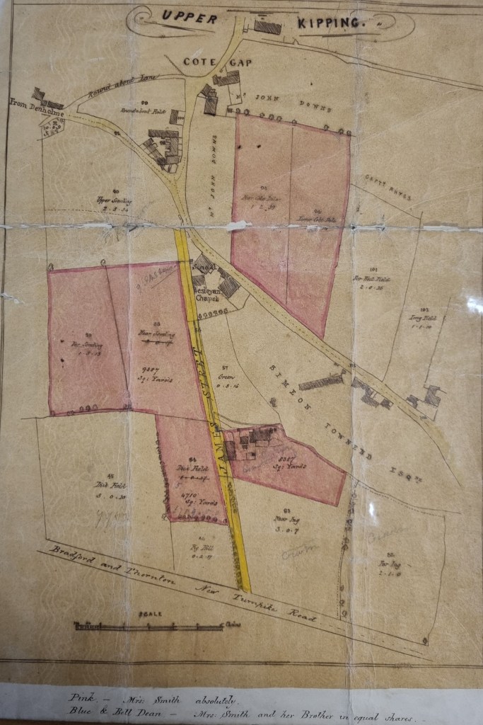 A landowner mentioned on the plans is Simeon Townend. In the 1851 census a man with this slightly unusual name was a worsted merchant living in Upper Kipping, Thornton. William Cudworth records that in the nineteenth century the Lord of the Manor of Horton was Sir Watts Horton and then, after his death, his son in law Captain Charles Horton Rhyss assumed this role. He might well have had property in Thornton.