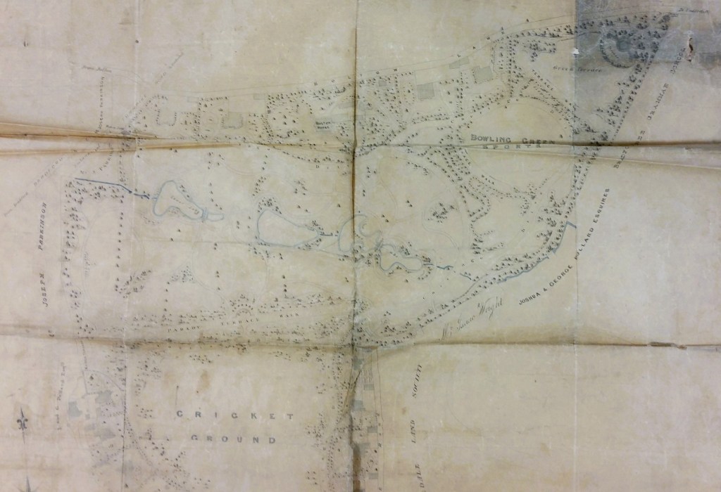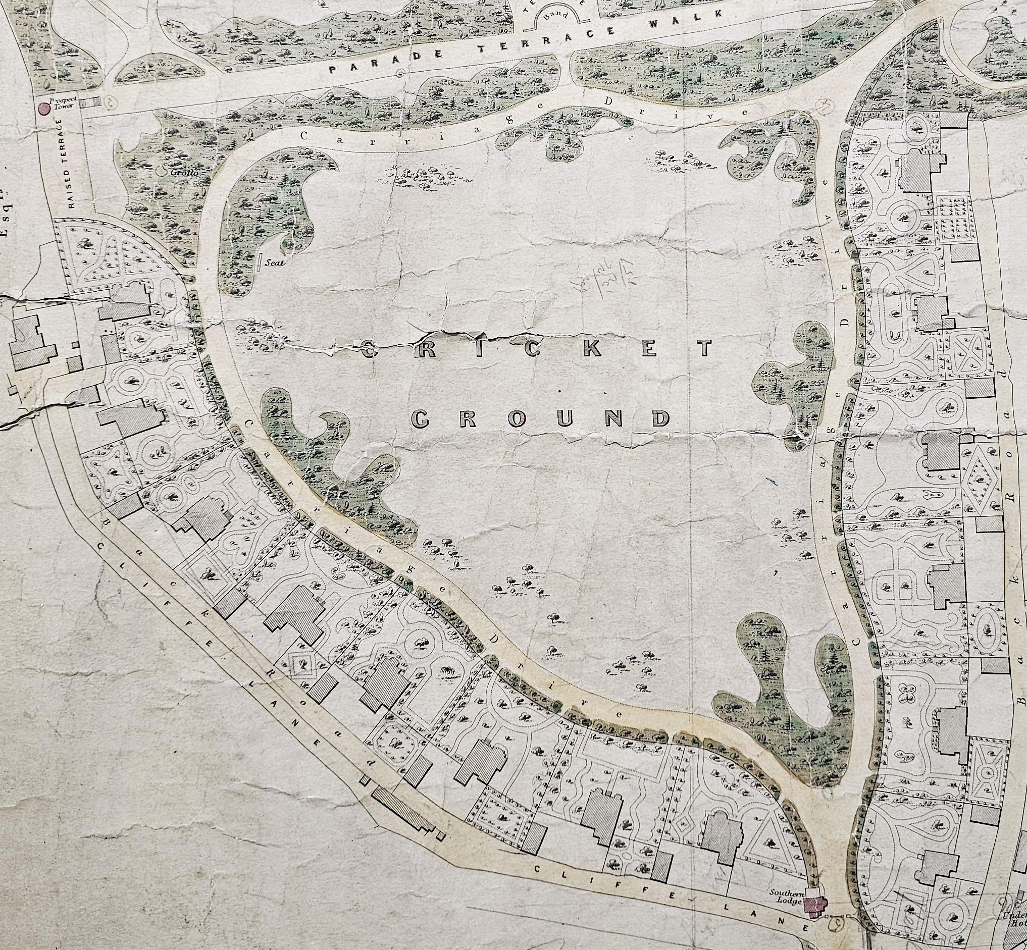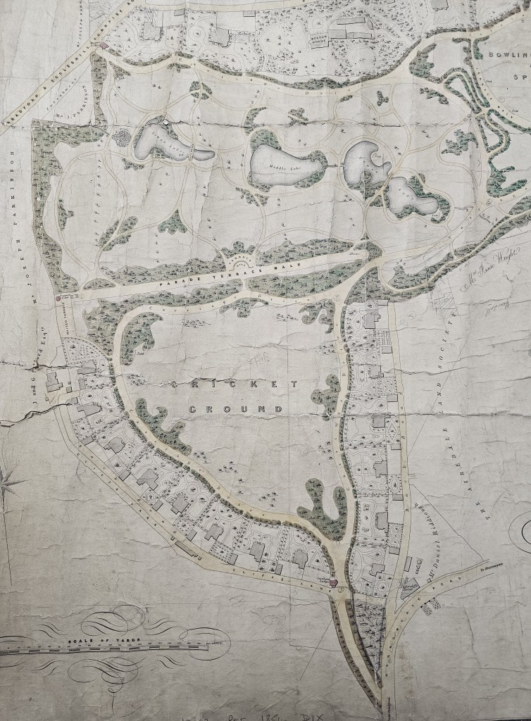 Paul may have been converted to the three-lake arrangement but was certainly not convinced by another feature of the original 1854 map: the villa development around the cricket ground, shown in the next map detail.