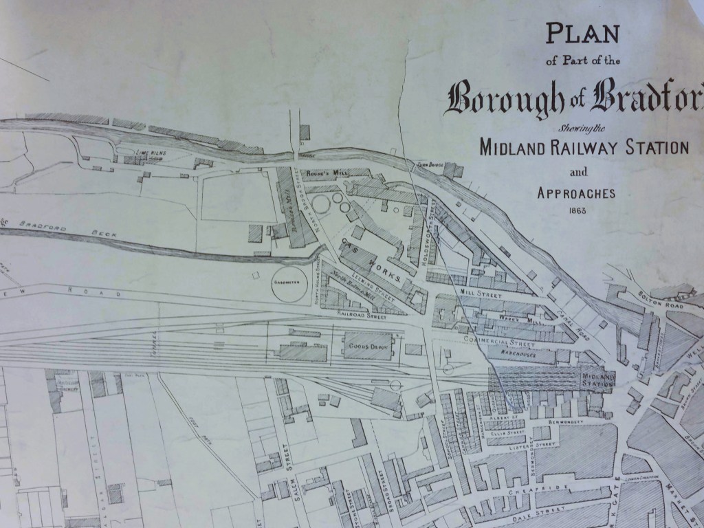 Subsequently the terminus was extended and moved on several occasions. The name Midland Station was employed after the Midland Railway Co. took over the line in 1851. The station was known as Bradford Market Street by 1890 and was of course finally renamed Bradford Forster Square. Further extensive demolition of housing must have occurred, but I have not investigated this.