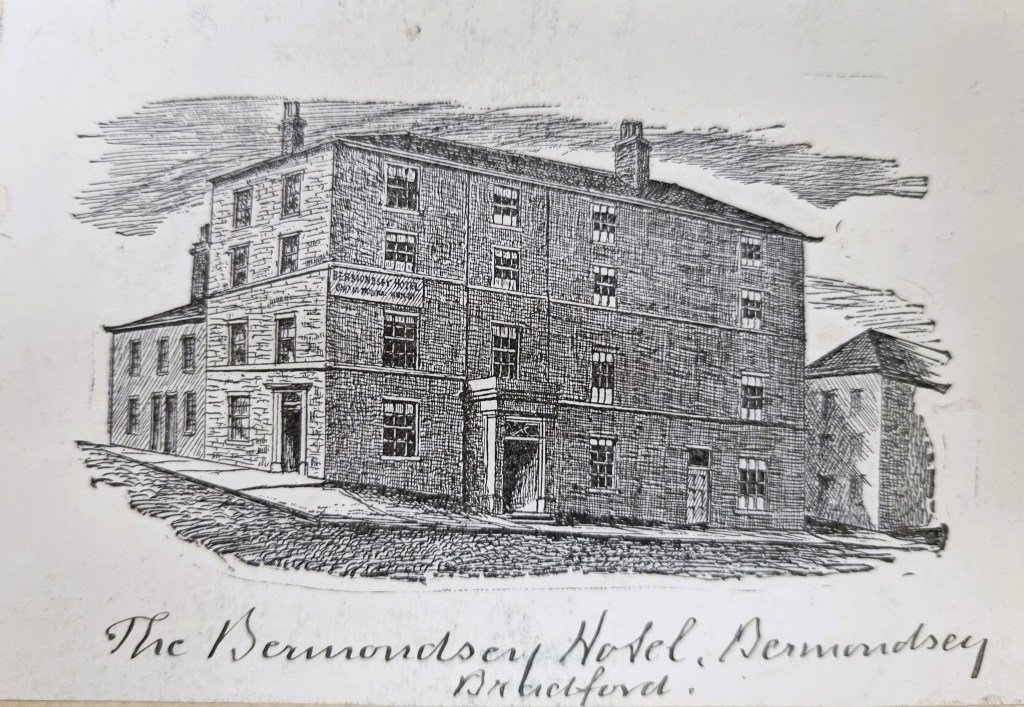 Writing at the end of the 19th century he claims that Henry, Earl of Lincoln (the last de Lacy to own the manor of Bradford) had a hall or manor house mentioned in 1311. This sounds plausible although no location is given. He also writes ‘it is pretty certain that Bradford could boast of a castle’ which (he speculates) the de Lacy family used a stopping place. He places it ‘near where the Bermondsey Hotel recently stood’. He gives no evidence either for the existence of a castle nor its location, but this comment did at least alert me to the presence of the Bermondsey Hotel which had previously escaped my notice.