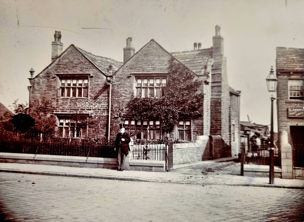 ‘I’m pretty sure that it is William Moulson pictured rather than Ezra Hammond. Moulson was mayor a couple of years before Hammond. The house that the gentleman is standing outside is 29 and 30 Little Horton Green. The 1891 directory shows (a) that 29 and 30 Little Horton Green is next to George Askwith’s property and (b) that William Moulson was living at 29 and 30 Little Horton Green. If you look at the entry on the Undercliffe Cemetery website it looks like the same chap who is in the photo. Ezra Hammond would have been living a bit further down the road at Horton Hall.’